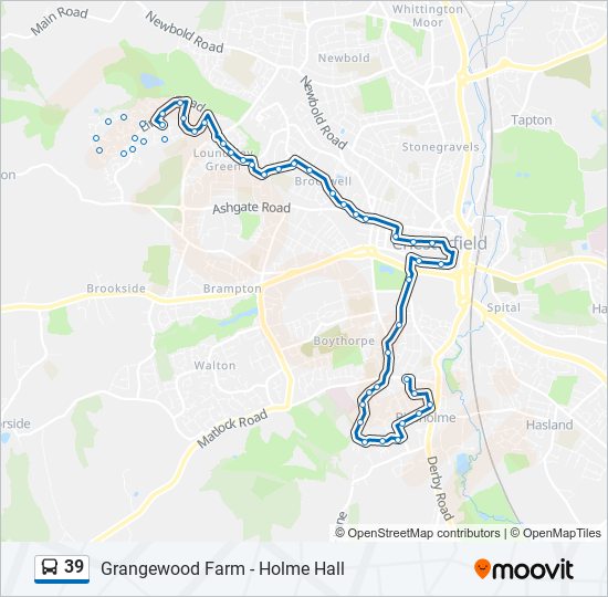 Get the latest 39 bus timetable, route maps, and fare information for the Grangewood Farm - Holme Hall. Operated by Stagecoach Yorkshire. 39 Bus Route: Grangewood Farm - Holme Hall with Stops and Timetable.. Holme Hall - CHESTERFIELD; Inbound Timetable. Choose Bus Stop