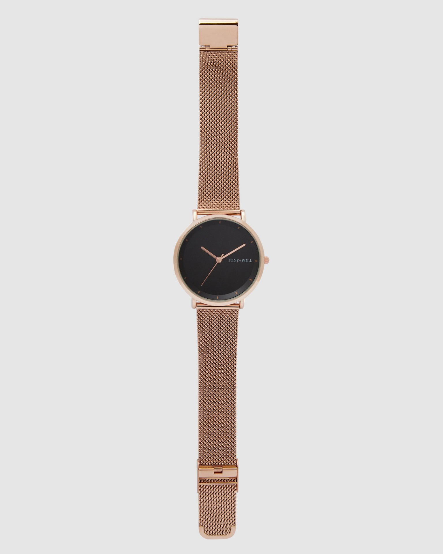 DETAILS Case Size 38mm Case Color Rose Gold Dial Color Black Strap Width 18mm Strap Material