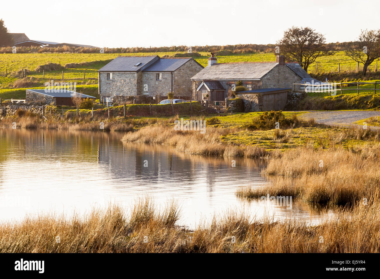 Dozmary Pool Lake on Bodmin Moor Cornwall England. It is one site that is claimed to be the home