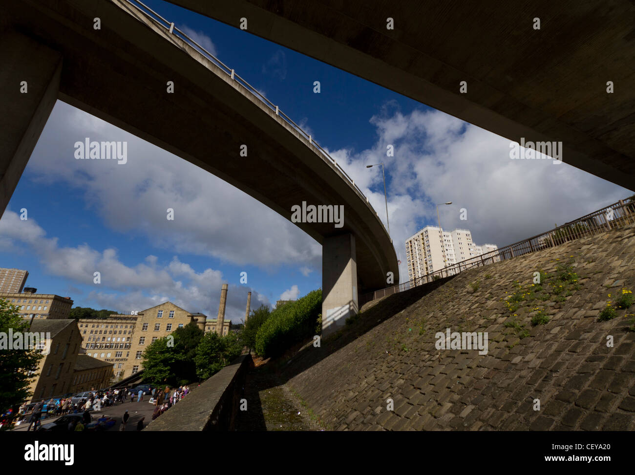 Burdock Way Flyover and car boot sale, Halifax, West Yorkshire Stock Photo Alamy