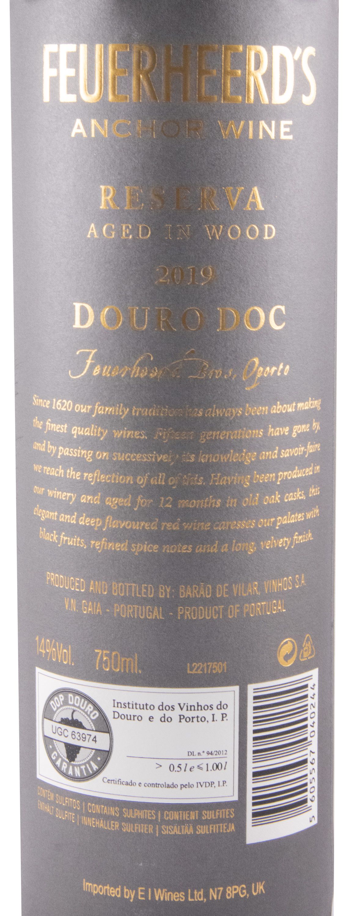 Feuerheerd's Douro Red 'Anchor Wine'. Style. Red. Type. Still. Winemaker. Álvaro van Zeller Appellation. Douro DOC. Varieties. Tinta Barroca, Touriga Franca. Available Sizes (L) 0.750. Distribution Area. Delaware, New Jersey, New York, and Pennsylvania.. Feuerheerd's Duoro Red Reserva Port Barrel Aged 'Anchor Wine' (Paper.
