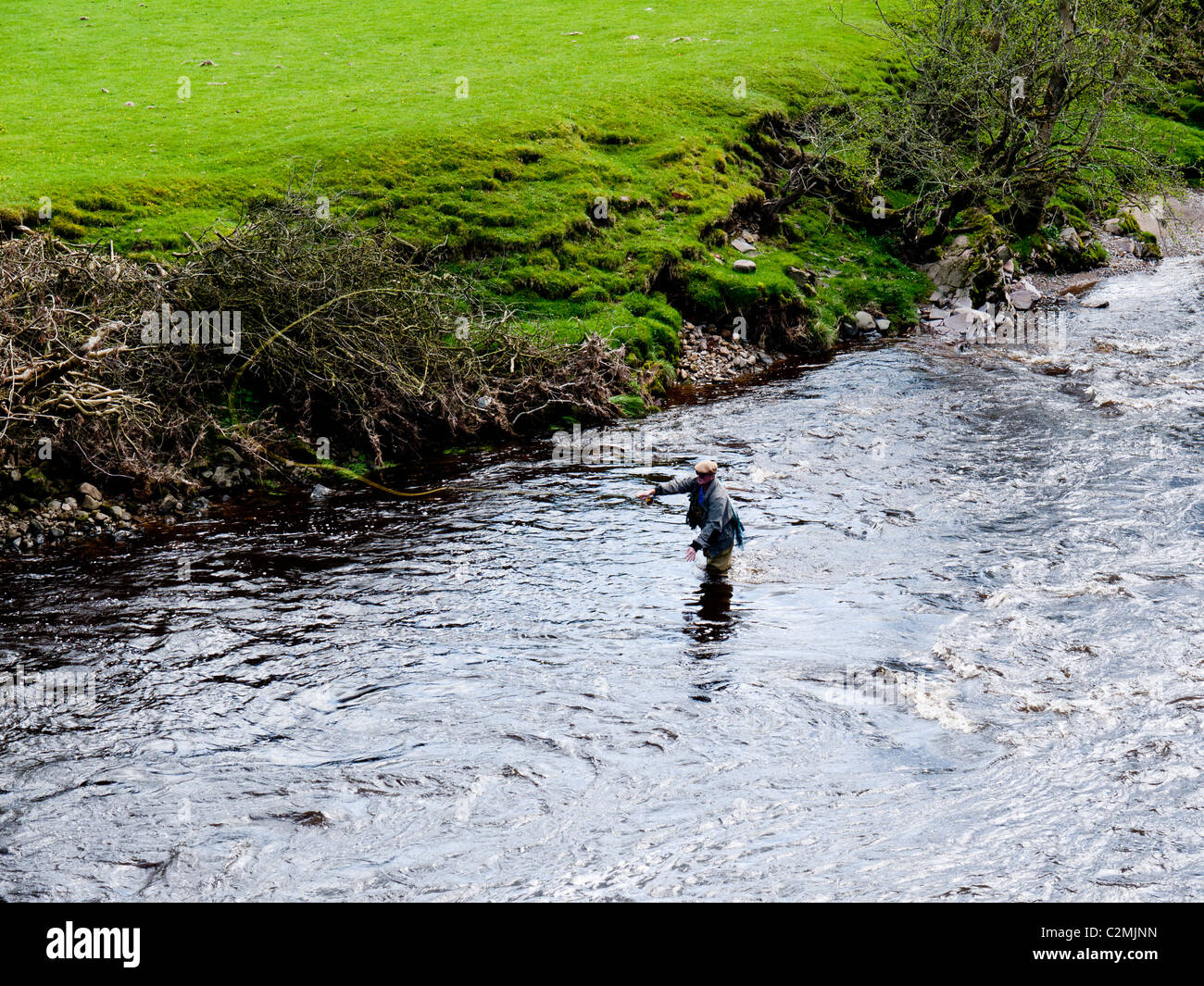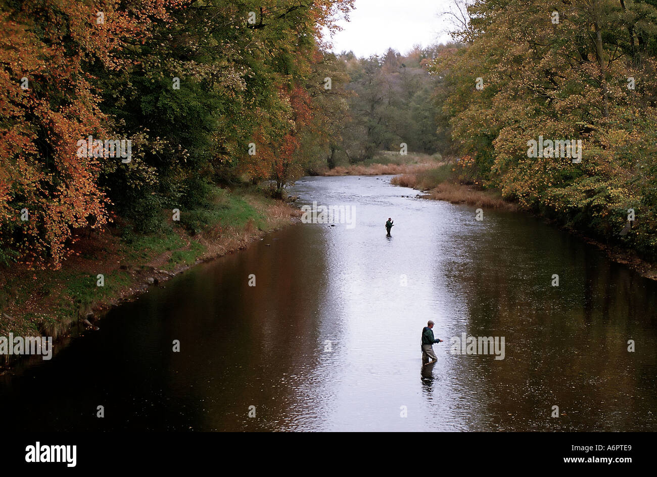 FLY FISHING ON THE RIVER RIBBLE AT GISBURN IN LANCASHIRE UK PIC BY JOHN ROBERTSON Stock Photo
