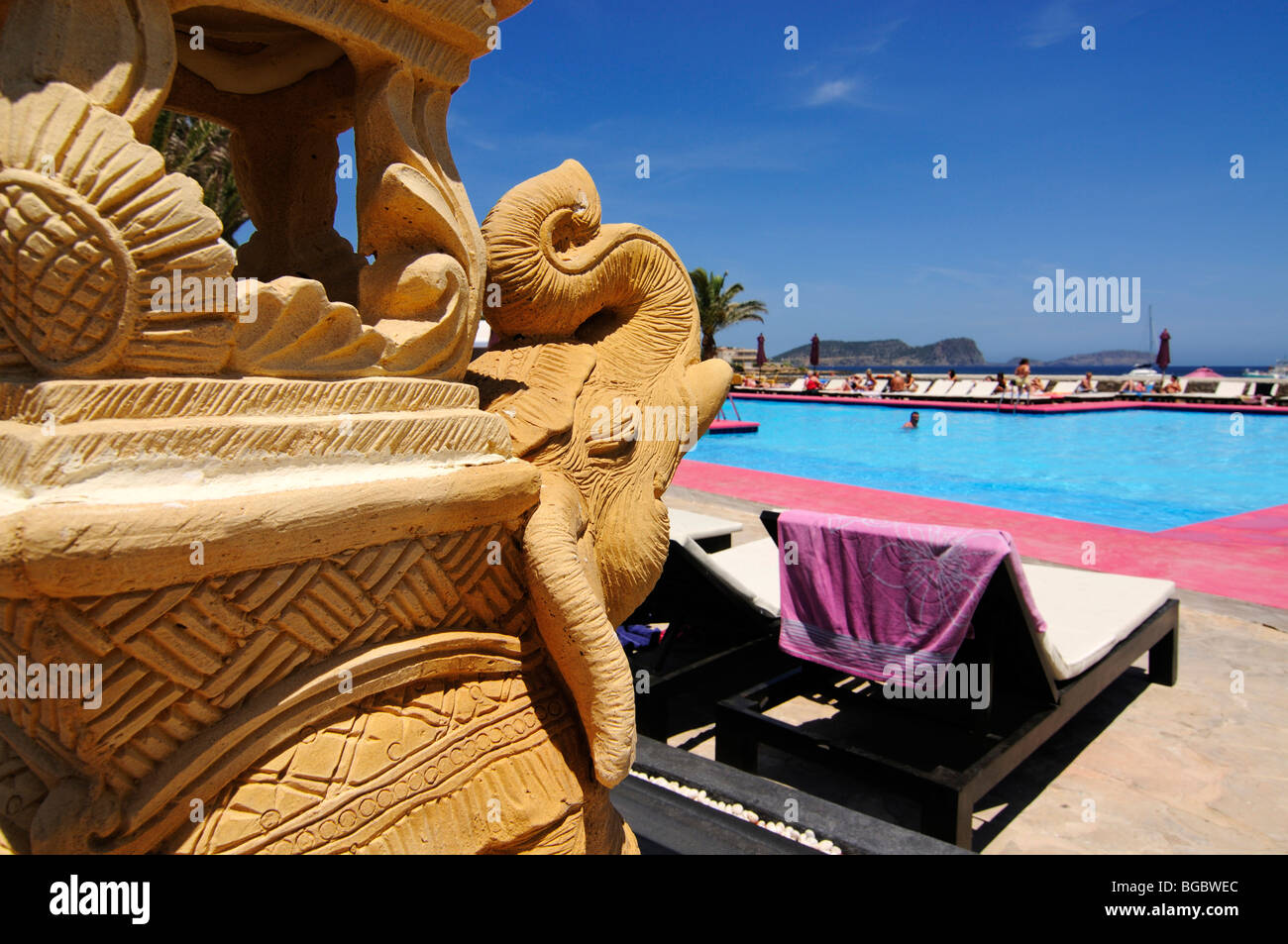 Jacaranda beach lounge, Es Canar, Stock Photo Alamy
