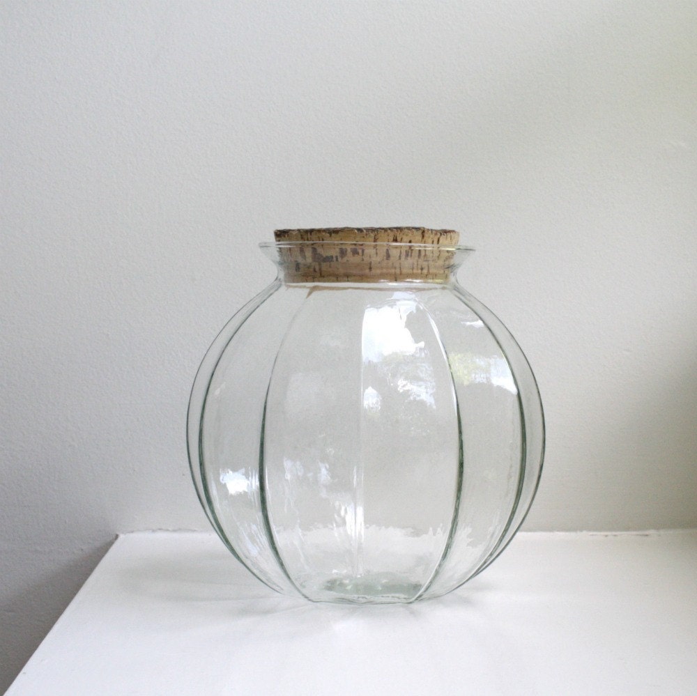 Mid Century Large Glass Jar Apothecary Cork Lid Handmade Spain