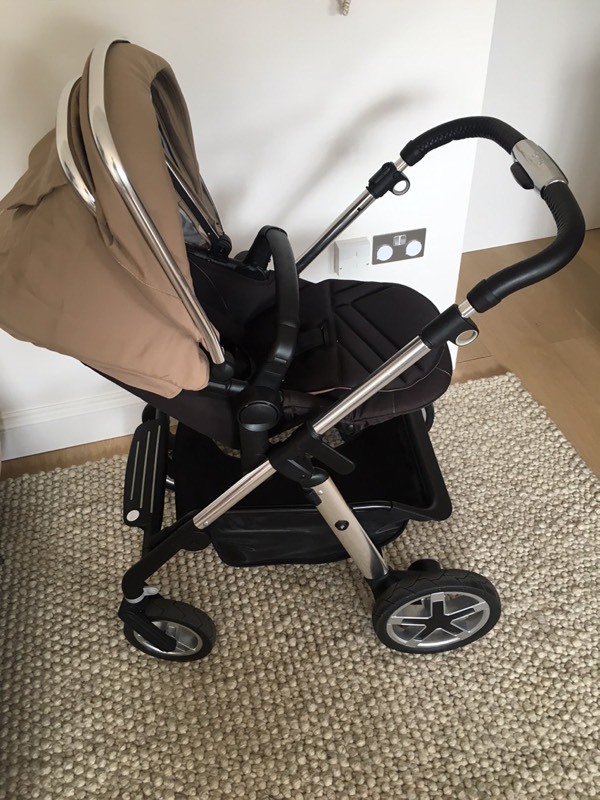 About this item. Multi-terrain travel system suitable from birth to 22kg with premium fabrics, a polished chrome chassis, coordinating leatherette handle and quilted detailing. Pushchair seat features the new Genius harness system, with an easy to use magnetic 5-point safety buckle, padded chest and harness pads and one-motion adjustments.